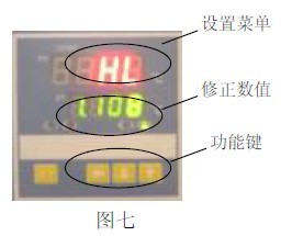 (如右圖所示)當工作室內溫度低于限溫 ℃設定值后保護系統(tǒng)消除,儀表恢復工作。如此循環(huán),直**故障排除。